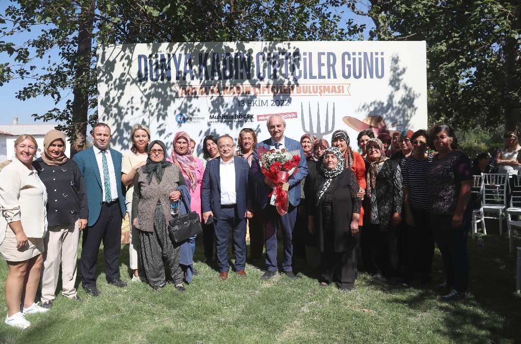 Antalya Büyükşehir Belediyesi, 15 Ekim Dünya Kadın Çiftçiler Günü etkinlikleri kapsamında, Antalya’nın farklı ilçelerinde yaşayan çiftçi kadınları “Antalya Çiftçi Kadınlar Buluşması” etkinliğinde bir araya getirdi. Antalya Zeytinpark’ta gerçekleştirilen buluşmaya Antalya Büyükşehir Belediyesi Başkan Vekili Mesut Kocagöz, Büyükşehir Belediyesi Genel Sekreter Yardımcısı Mustafa Gürbüz, Büyükşehir Belediyesi Tarımsal Hizmetler Dairesi Başkanı Seda Özel, Antalya Tarım Konseyi Genel Sekreteri Gonca Ertok, tarım yazarı Mine Ataman, kadın kooperatifleri ve çiftçiler katıldı.
