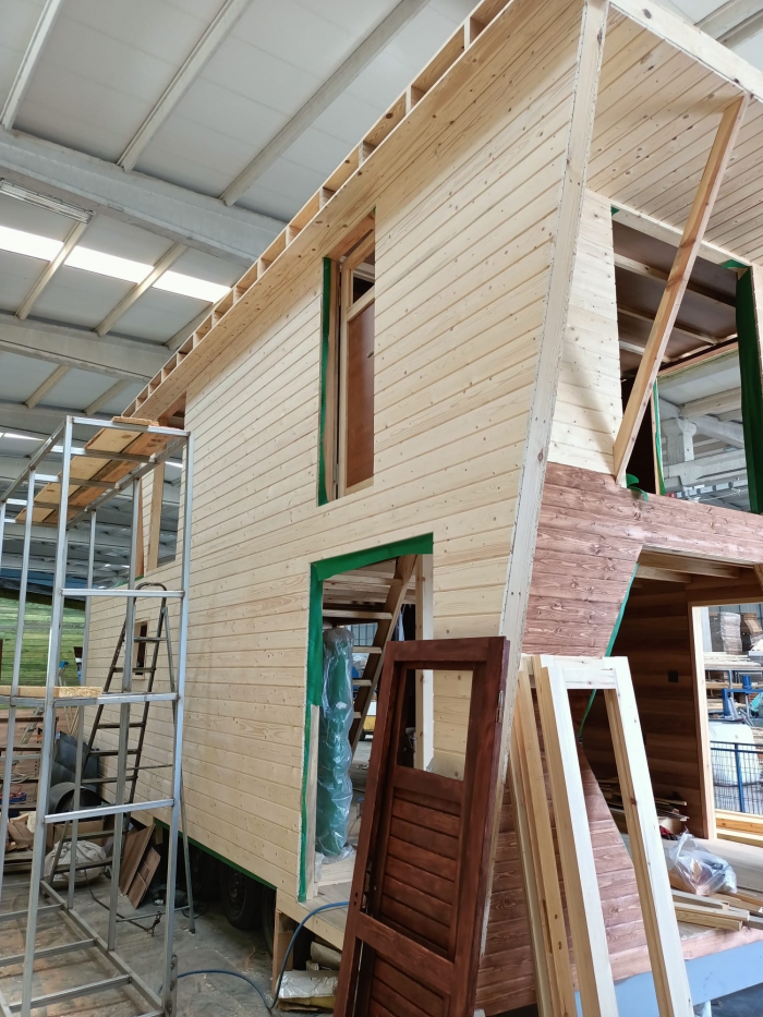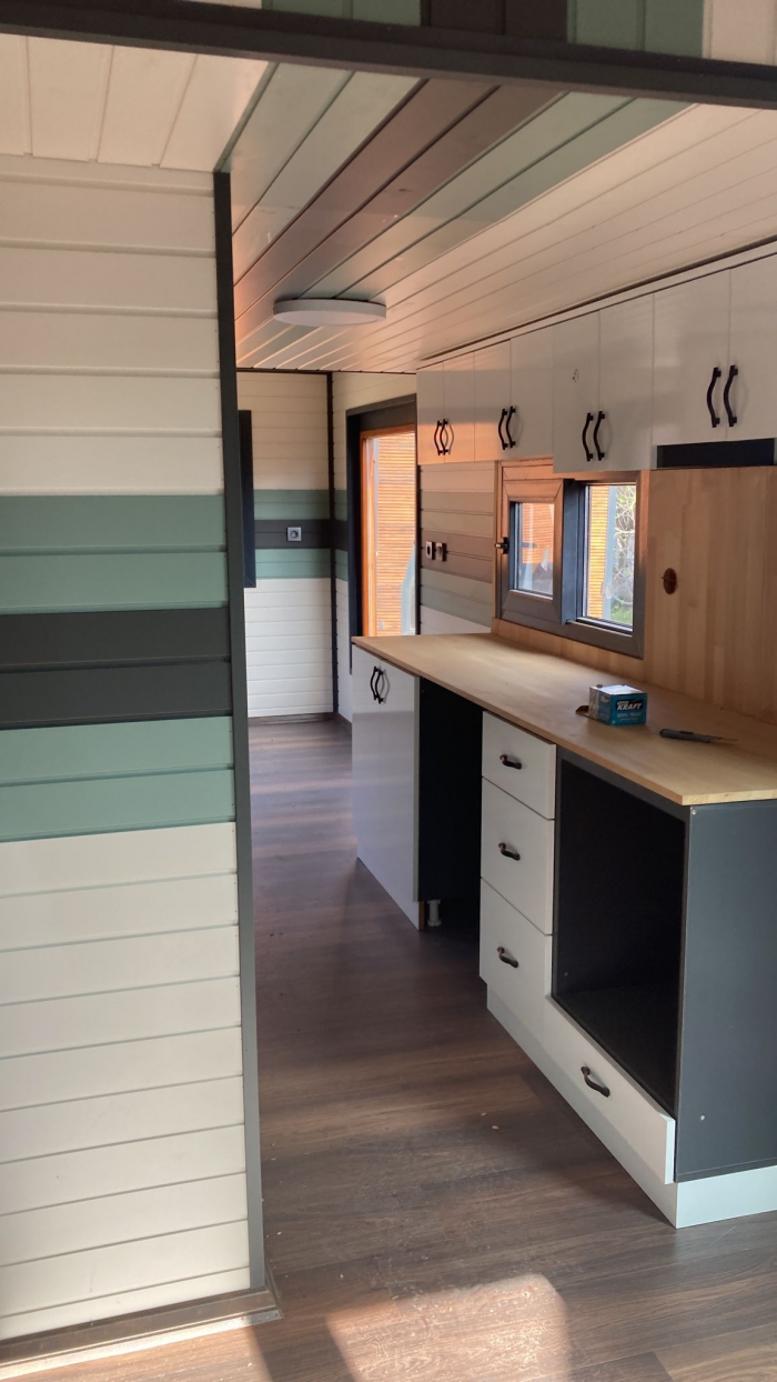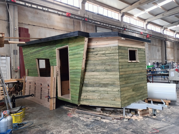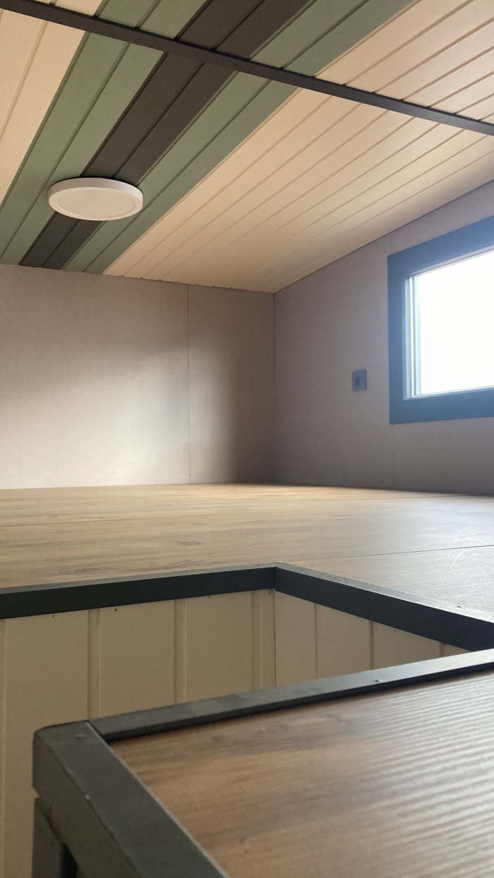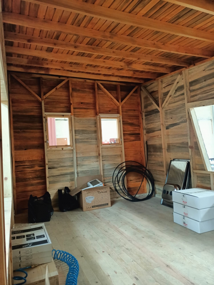 Tinyhouse'un iç donanım özellikleri de oldukça zengin ve konforludur. Elektrik tesisatı, lavabo, tuvalet, banyo ve mutfak gibi temel yaşam alanları bu tasarıma dahildir. Bu özellikler, Tinyhouse'un minimal boyutlarına rağmen fonksiyonel bir yaşam alanı sunar. Dursunbey çamı ise bu yapıya katkı sağlayarak, iç mekanın sıcak ve doğal bir atmosferle donatılmasını mümkün kılar. Ahşap dokusunun doğal yapısı, Tinyhouse'un iç mekanında hem görsel bir zenginlik hem de sıcaklık yaratır.