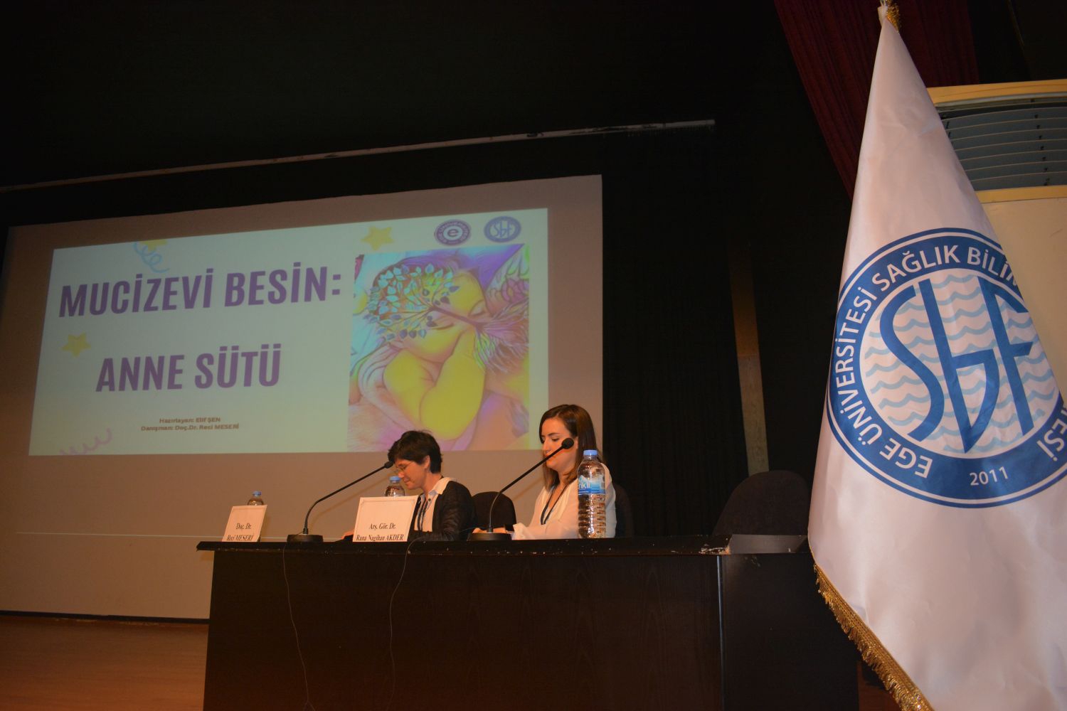 “Mucizevi Besin Anne Sütü” başlıklı ilk sunumu Doç. Dr. ReciMeseri ve Arş. Gör. Dr. Rana Nagihan Akder eşliğinde Elif Şen gerçekleştirdi. Beslenme ve Diyetetik Bölümü öğrencisi Elif Şen, “Anne sütü, yenidoğan bebeğin optimum büyüme ve gelişme için gerekli olan, enerji ve besin öğelerini içeren, yararlığı yüksek, ilk altı ay tek başına yeterli olan bebek için en ideal besindir” diye konuştu.