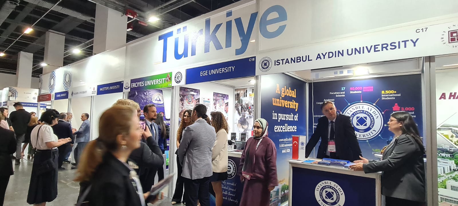 Dünyanın dört bir yanından gelen akademisyenlerin, eğitim liderlerinin ve araştırmacıların buluştuğu kongrenin resmi açılış töreninde; YÖK Başkanı Prof. Dr. Erol Özvar, YÖK Uluslararası İlişkiler Dairesi Başkanı Mustafa Efe, Ulusal Ajans Başkanı İlker Astarcı gibi önemli isimler Ege Üniversitesi standını ziyaret etti.
