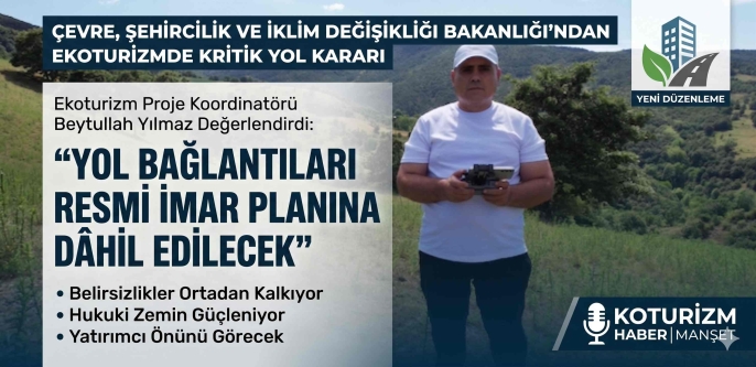 Yılmaz, alınan kararın yatırımcılar açısından büyük önem taşıdığını belirterek şu ifadeleri kullandı: "Bakanlığın vermiş olduğu bu karar, sahada ve onay süreçlerinde karşılaştığımız büyük bir soru işaretini gidermiştir. Ekoturizm yatırımlarında yol bağlantılarının sadece şahsi muvafakatnamelerle veya tapu şerhleriyle havada bırakılmayıp, doğrudan resmi imar planı sınırlarına dâhil edilmesi, projelerin hukuki zeminini çok daha sağlam hale getiriyor. Bu uygulama sayesinde hem yatırımcıların resmi kurumlardaki onay süreçlerinde yaşayabileceği zaman kayıpları ve evrak krizleri önlenecek hem de bölgedeki ulaşım ağları çok daha planlı ve güvenli bir şekilde haritalandırılmış olacaktır. Yatırımcılarımızın projelerini hazırlarken bu yeni kuralı mutlaka en baştan göz önünde bulundurmaları gerekiyor."
