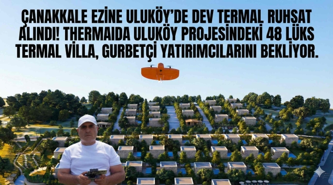 Çanakkale'nin Ezine ilçesine bağlı Uluköy, sağlık turizminde küresel bir marka olma yolunda dev bir adım attı. Termal Turizm Proje Koordinatörü Beytullah Yılmaz, 1 milyon metrekarelik termal turizm amaçlı sıcak su ruhsatının resmi olarak alındığını duyururken, Avrupa’daki gurbetçi yatırımcılara dev proje "Thermaida Uluköy Thermal Villas" için çağrıda bulundu.