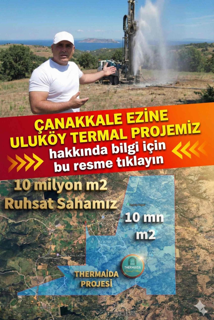 Bölgede, yatırımcıya termal su kullanım garantisi sunan 10.000.000 metrekarelik ruhsat sahaları bulunuyor. İçerisinde 48 termal villanın yapılabileceği 28 dönümlük alanlar, Ezine Belediyesi'nin de desteklediği dev projeler arasında yer alıyor.