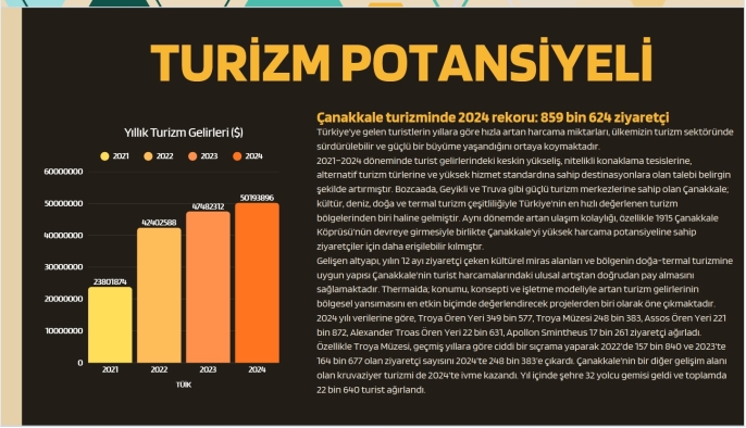 Turizm Rekoru: Çanakkale, 2024 yılında 859 bin 624 ziyaretçi ile tarihi bir zirve gördü.