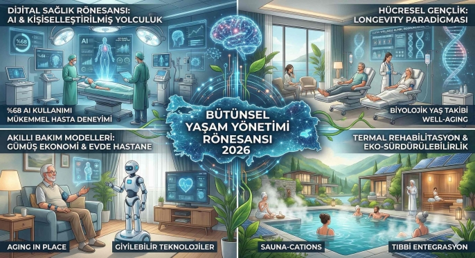 Yapay zekanın klinik süreçlere %68 oranında nüfuz etmesi, operasyonel verimliliği artırırken hasta güvenliğini en üst düzeye taşımıştır. Ticaret Bakanlığı'nın sağladığı milyonlarca liralık teşvikler, özel sektörün teknolojik dönüşümünü hızlandırarak Türkiye'yi yüksek gelir grubundaki hastalar için cazibe merkezi haline getirmiştir. Yaşlı bakımında "Hospital at Home" modeliyle dijitalleşme evlere girmiş, "Gümüş Ekonomi" Türkiye'nin sosyal refah stratejisinin ana sütunlarından biri olmuştur. Longevity alanında Bodrum ve Antalya'da sunulan hücresel wellness hizmetleri, Türkiye'yi dünyanın en zengin kitleleri için bir "gençleşme destinasyonu" olarak konumlandırmıştır. Termal turizm ise klasik kaplıca anlayışından sıyrılarak, bilimsel rehabilitasyonun ve modern spa ritüellerinin merkezi haline gelmiştir.