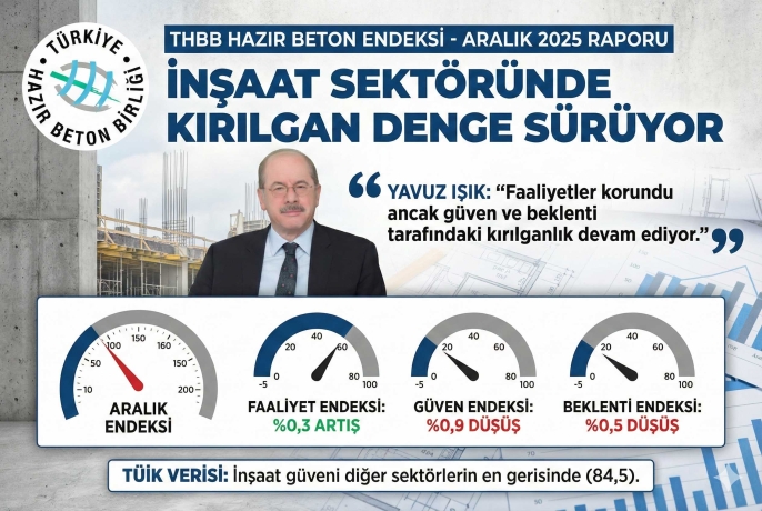 Türkiye ekonomisinin lokomotifi olan inşaat sektöründe 2025 yılının karnesi belli oldu. Türkiye Hazır Beton Birliği (THBB) tarafından her ay paylaşılan ve sektörün en önemli öncü göstergesi kabul edilen “Hazır Beton Endeksi” Aralık 2025 raporu açıklandı. Veriler, inşaat faaliyetlerinin dirençli kaldığını ancak güven ve beklenti tarafında temkinli duruşun sürdüğünü ortaya koyuyor.