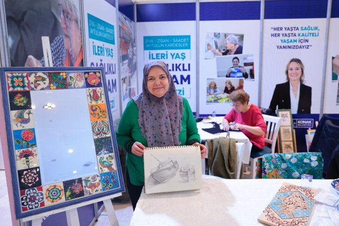 Konak Belediyesi, fuar alanında sadece bir katılımcı olarak değil, yaşayan bir merkez olarak yer aldı. İleri Yaş Sağlıklı Yaşam Merkezi standı, üyelerin el emeği üretimlerinin sergilendiği bir sanat alanına dönüştü. Stantta öne çıkan etkinlikler şunlar oldu: