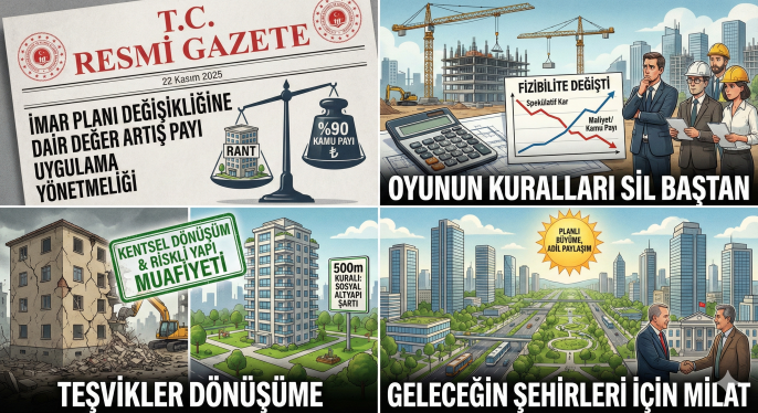 22 Kasım 2025 tarihli İmar Planı Değişikliğine Dair Değer Artış Payı Uygulama Yönetmeliği, Türkiye şehircilik tarihinde bir milattır. "İmar rantı" kavramı, artık spekülatif bir kazanç kapısı olmaktan çıkarılmış, kamu maliyesinin ve kentsel dönüşümün finansman kaynağına dönüştürülmüştür.
