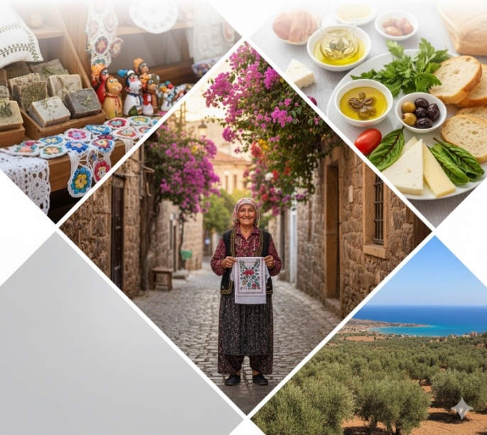 El Sanatları ve Gastronomi: Köy, kendine özgü el sanatları, yerel üretici pazarları ve Ege mutfağının en lezzetli örneklerini sunan gastronomisi ile ziyaretçilerine otantik bir deneyim sunuyor.