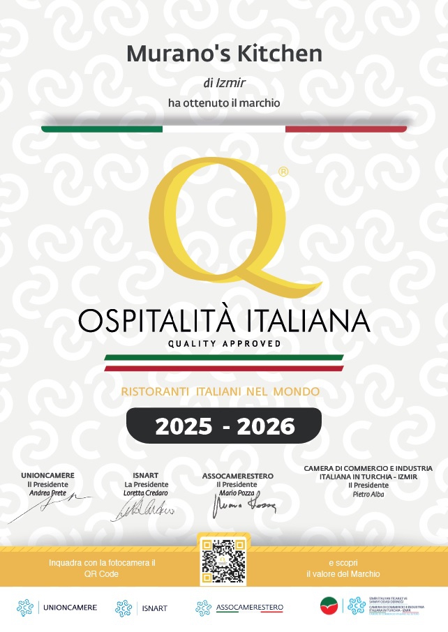 Murano’s Kitchen, İtalyan mutfağındaki başarısıyla “Ospitalità Italiana” kalite sertifikasını aldı. İzmir’de İtalyan lezzetlerini en özgün haliyle sunuyor.
