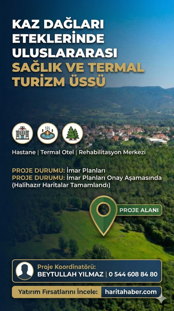 Stratejik Lokasyon: Kaz Dağları Milli Parkı’na komşu, oksijen ve termal kaynakların tam merkezinde.