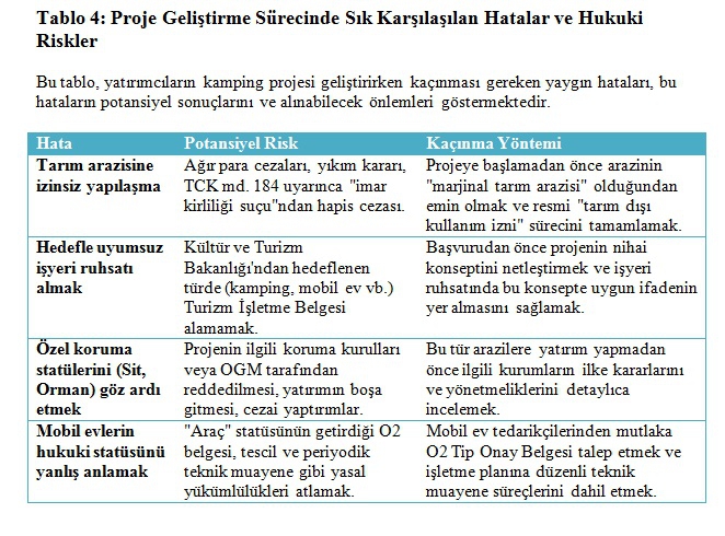Türkiye'de bir kamping projesi geliştirmek, hukuki bir labirentte yolunu bulmayı gerektirir. Başarının anahtarı, projenin en başında doğru hukuki statüye sahip bir arazi seçmek ve bu araziye uygun, yasalara tam uyumlu bir konsept geliştirmektir. Yatırımcılar, tarım arazisine izinsiz yapılaşmak veya projenin nihai hedefiyle uyumsuz bir işyeri ruhsatı almak gibi yaygın hatalardan kesinlikle kaçınmalıdır. Özellikle 18 Ocak 2024 tarihli Mobil Ev Yönetmeliği gibi yeni düzenlemeler, sektörün dinamik yapısını ve mevzuatı yakından takip etmenin önemini bir kez daha göstermiştir. Projeleriniz ile ilgli Beytullah Yılmaz 0 544 608 84 80 nolu telefondan ücretsiz ön bilgi alabilirsiniz.