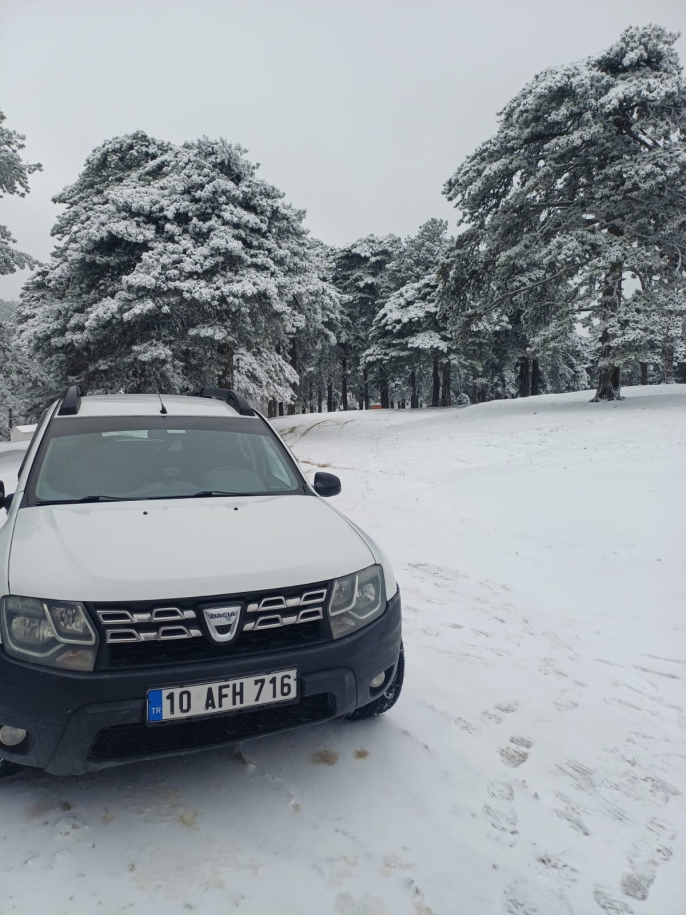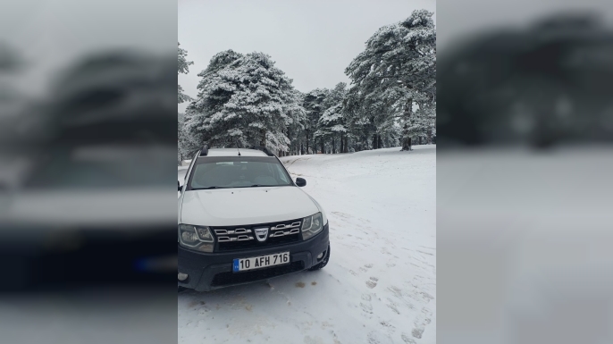 Hafta başı olmasına rağmen kar haberini alan bazı vatandaşlar, Kazdağları’nın Çınarlıhan gibi bölgelerine giderek karın tadını çıkarmaya başladı. Çam ağaçlarının üzerine çöken kar yükü, bölgeyi adeta bir kış masalına çevirdi.