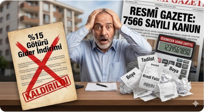 Konut Kirasında Götürü Gider Kalktı: Konut kira geliri elde edenler artık hiçbir belge sunmadan gelirin %15’ini (götürü gider) vergiden düşemeyecek.