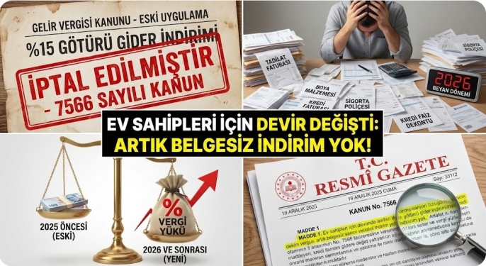 Analiz: Bu düzenleme, konut kira geliri elde edenlerin artık harcamalarını belgelemek zorunda kalacağı (Gerçek Gider Yöntemi) veya konutlar için bu indirim hakkının tamamen kaldırıldığı/daraltıldığı şeklinde yorumlanıyor. Bu da konut sahiplerinin ödeyeceği vergi yükünün artabileceğini gösteriyor.
