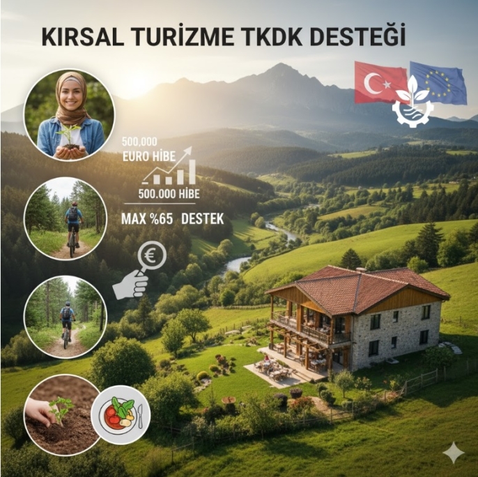 Tarım ve Kırsal Kalkınmayı Destekleme Kurumu (TKDK), IPARD programı kapsamında kırsal alanlarda istihdamı artırmak ve ekonomik faaliyetleri çeşitlendirmek amacıyla yeni bir destek paketi sunuyor. "Çiftlik Faaliyetlerinin Geliştirilmesi ve İş Geliştirme" (302-4) tedbiri ile Kırsal Turizm ve Rekreasyon Faaliyetleri desteklenecek. Bu kapsamda, konaklama (otel/pansiyon), yeme-içme tesisleri ve rekreasyon alanları kurmak isteyen yatırımcılara, 500.000 Avro'ya kadar yatırım tutarı için %65'e varan oranlarda geri ödemesiz hibe sağlanacak.
