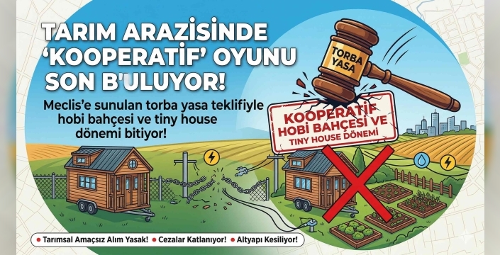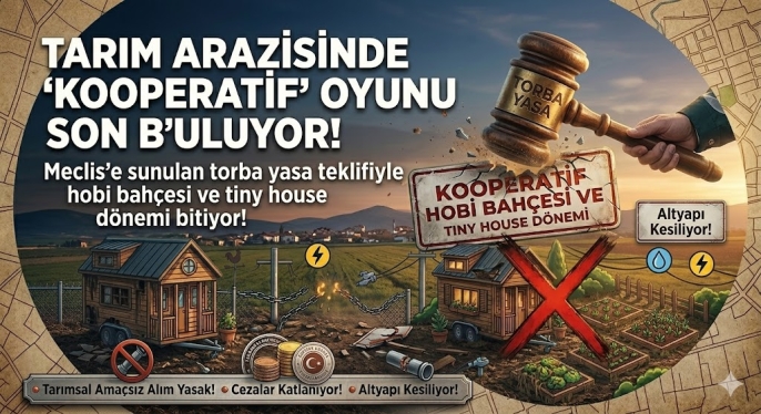 Türkiye’de tarım arazileri ve arsa yatırımı konusunda ezberleri bozacak tarihi bir düzenleme Meclis gündeminde. Hazırlanan yeni torba yasa teklifiyle, hobi bahçesi ve 'tiny house' köyleri kurmak için sıkça kullanılan "kooperatif üzerinden tarla alma" modeli tamamen bitiyor. Peki, mevcut yatırımcıları ve yeni arsa almayı düşünenleri neler bekliyor?