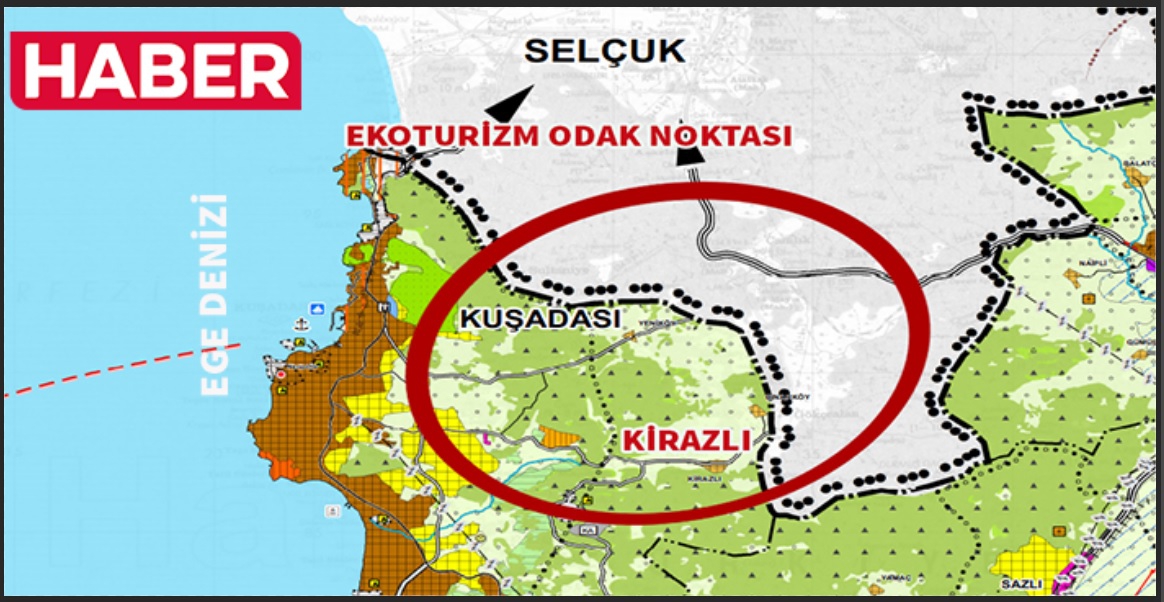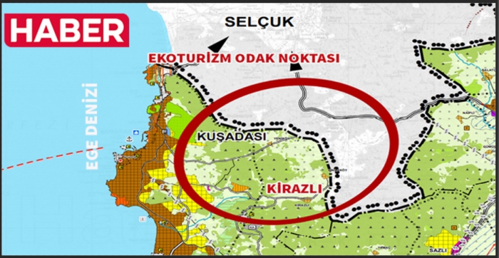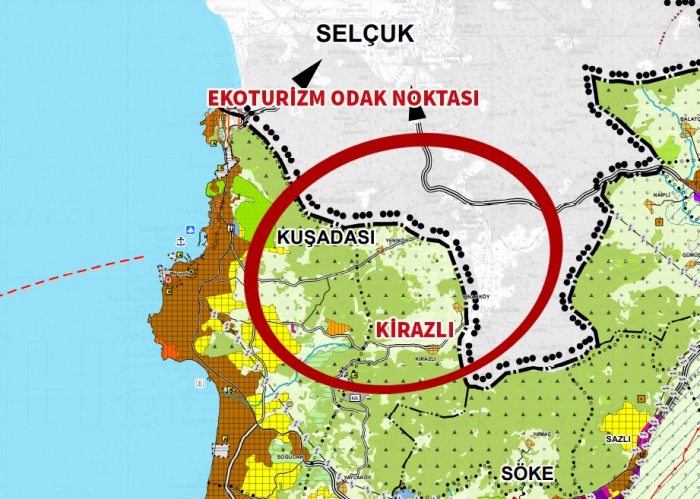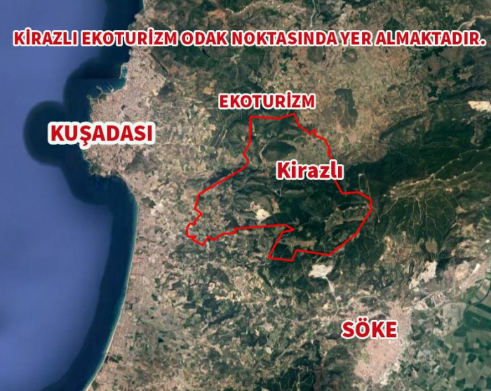 Kuşadası İlçesi Kirazlı Mahallesi’nde ekolojik tarım ve eko-turizm desteklenmektedir. İlçedeki proje halinde olan katı atık depolama ve arıtma tesisi alanları da plana işlenmiştir.