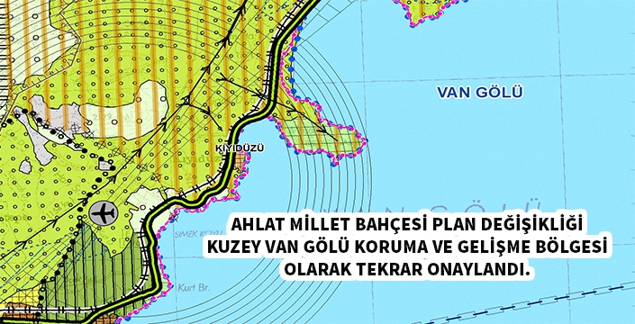 MUŞ-BİTLİS-VAN PLANLAMA BÖLGESİ 1/100.000 ÖLÇEKLİ ilgili paftalarda Ahlat Millet Bahçesi , Kuzey Van Gölü Kültür Turizm koruma ve gelişme bölgesi olarak değişti.