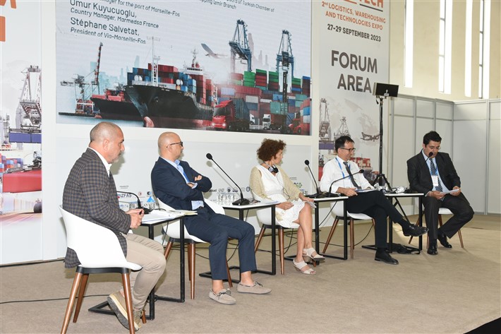 Moderatörlüğünü Uluslararası Taşımacılık ve Lojistik Hizmet Üretenleri Derneği ( UTİKAD) Genel Müdürü Alperen Güler'in yaptığı "Akdeniz Havzası, Ege Denizi ve Güney Fransa Rotasında Lojistiğin Kökenleri ve Geleceği (Marsilya Port) Oturumuna, İMEAK Deniz Ticaret Odası İzmir Şubesi Yönetim Kurulu Başkanı Yusuf Öztürk, ViaMarseilleFOS (Marsilya FOS Limanı) Başkanı StephaneSalvetat, ViaMarseille FOS İşletme Müdürü Amal Louis, Marmedsa Fransa Ülke Müdürü Ömür Kuyucuoğlu katıldı.