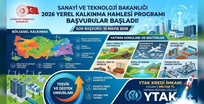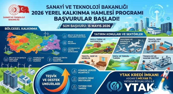 Sanayi ve Teknoloji Bakanlığı Kalkınma Ajansları Genel Müdürlüğü tarafından yürütülen 2026 Yılı Yerel Kalkınma Hamlesi Programı için beklenen başvuru süreci başladı. Yerel ve bölgesel kalkınmayı hızlandırmak, bölgeler arası gelişmişlik farklarını azaltmak ve yerel potansiyeli harekete geçirmek amacıyla başlatılan programa başvurular, 2 Mart 2026 tarihi itibarıyla elektronik portal üzerinden erişime açıldı.
