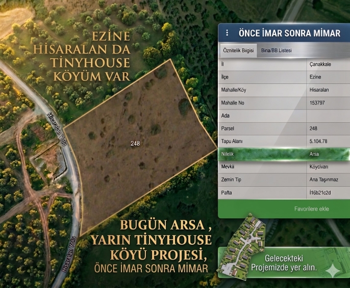 Çanakkale Ezine Hisaralan'da Dev Yatırım Fırsatı: "Bugün Arsa, Yarın Tiny House Köyü"