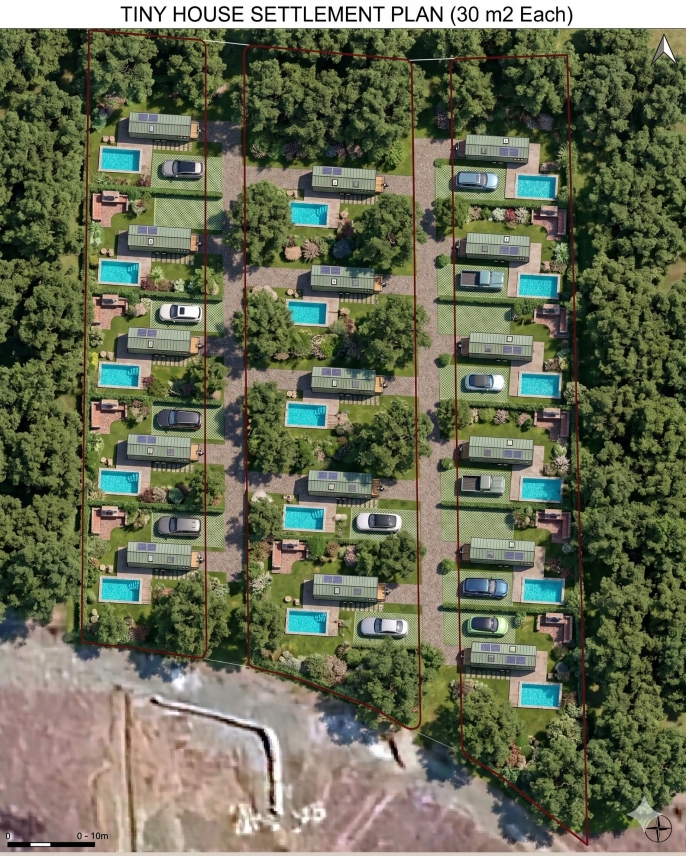 2. Projede toplam kaç adet Tiny House bulunacak? Doğayla iç içe, huzurlu ve butik bir yaşam alanı oluşturmak amacıyla toplam 5.104,78 m²'lik proje alanımızda sadece 16 adet Tiny House yer alacaktır. Kalabalıktan uzak, elit bir komşuluk ortamı hedeflenmiştir.