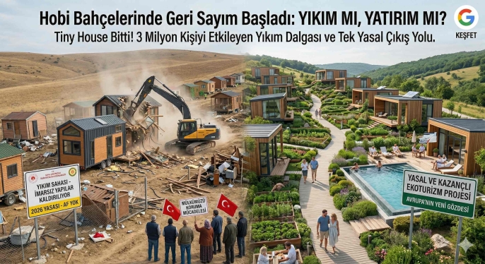 Hobi bahçesi ve tiny house yatırımları, artan cezalar ve 2026 ile birlikte zirveye çıkan yıkım kararlarıyla büyük bir riske dönüşürken, akıllı yatırımcı rotasını çoktan değiştirdi. Eski "arsa al, içine konteyner koy" devri tamamen kapanırken, yerini yasal güvencesi olan, döviz kazandıran "Ekoturizm ve Sağlık Turizmi" köyleri aldı.