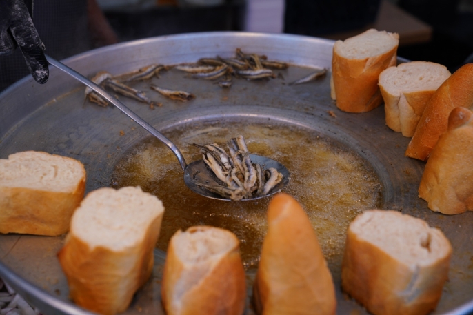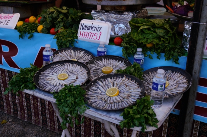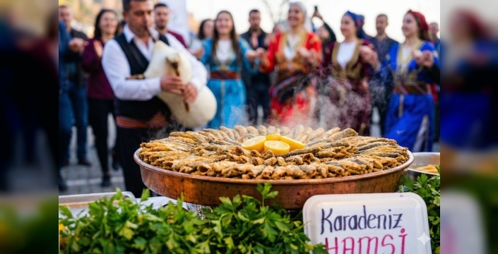 Gastronomi Şöleni: Karadeniz’in meşhur hamsisi, usta ellerde pişirilerek Tire halkına sunuluyor.