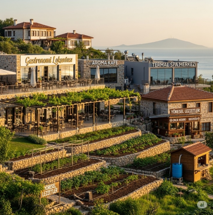 - Kırsal Turizm: Taş evlerden oluşan konaklama birimleri, yöresel yemeklerin sunulacağı bir gastronomi lokantası ve aromatik ürünlerin yer alacağı bir aromakafe.