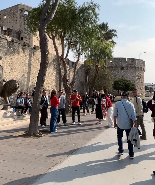 "Çeşme Kalesi'ni gerçekten çok sevdiler. Kalenin en üst noktasına çıktığımızda bizi karşılayan 360 derece kesintisiz Ege Denizi manzarası tek kelimeyle etkileyiciydi. Havanın açık ve güneşli olması da bu deneyimi bizim için daha özel kıldı. Tüm tur boyunca en çok fotoğraf ve videonun burada çekildiğini söyleyebilirim."