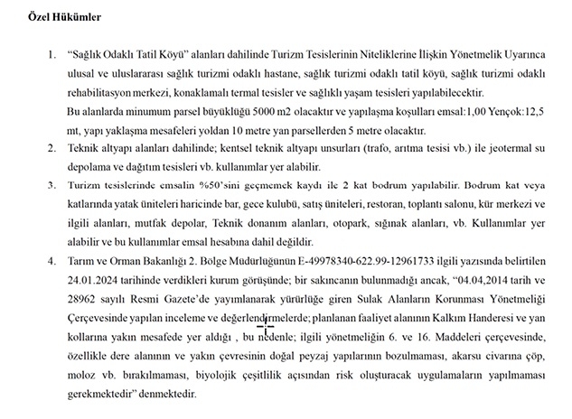 Termal Kür Tesisi Teşviki: Asli konaklama tesisleri ile birlikte Termal Kür Tesisi yapılması halinde inşaat emsali (E) 0.90'a kadar çıkabilmektedir.