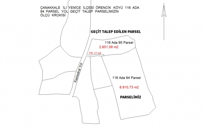 Örnek: KONU: TMK 748. madde gereğince geçit hakkı talebidir. Lehine hak talep edilen parsel: Çanakkale, Yenice, 116 Ada, 94 Parsel.