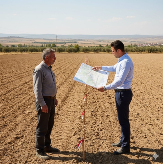 (Bu sayfada, bir bilirkişinin arazide ölçüm yaparken çekilmiş temsili bir fotoğrafı kullanılabilir.)
